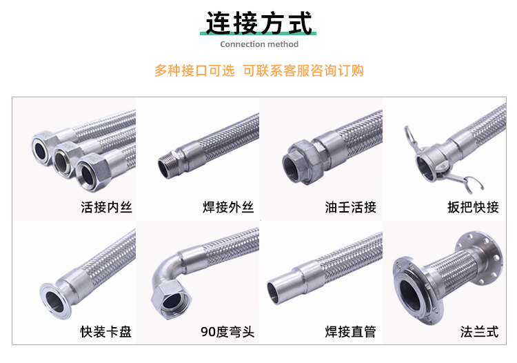 軟管適用范圍:需要充分的柔性輸送管,避免振動處的管道,適用于蒸汽、煤氣、氣體、重油、石油、化工藥品等。